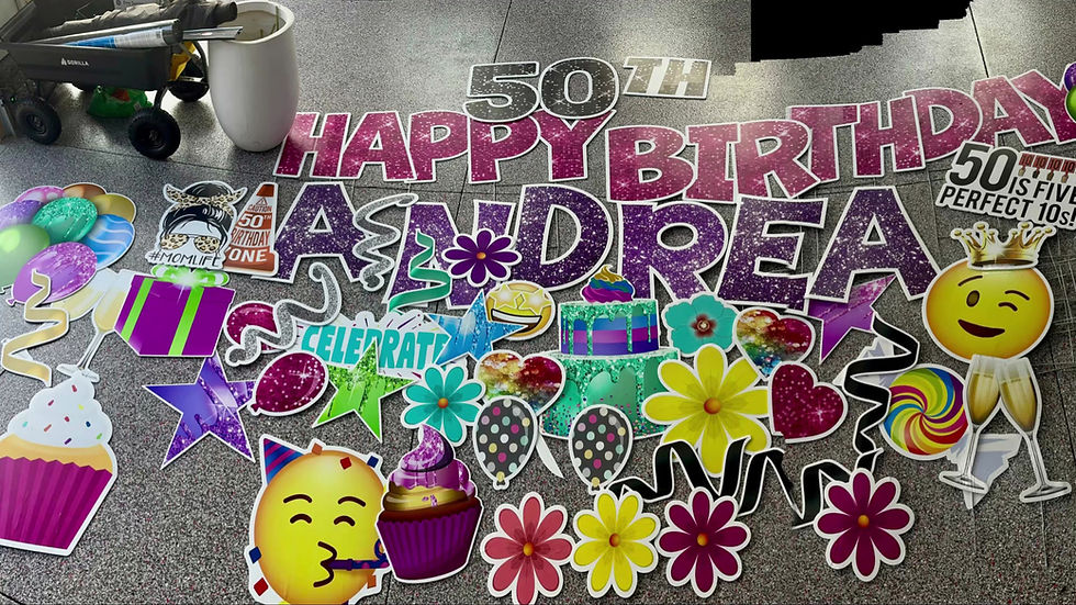 "They did a last-minute yard card for me! Very professional, super friendly & I absolutely loved the creativity they put into the yard card! Their response time & communication is amazing! Highly recommend them over any other!"