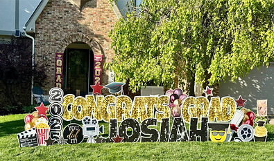 Celebrate graduation in a big way. Based on availability, this greeting will include "CLASS OF 2024" or "CONGRATS" and the GRADUATE NAME, a selected graphic, stars and balloons. We will try to match stars and balloons to the colors of your school choice. If you would like an alternate graduation message please include that in your order. *Rush/delivery fees may apply & same day delivery is not guaranteed. Prices include setup & pickup. Key Features: Fully Customizable: Add your graduate's name, school, photo, and colors. Perfect for All Graduates: Ideal for high school, college, and university celebrations.